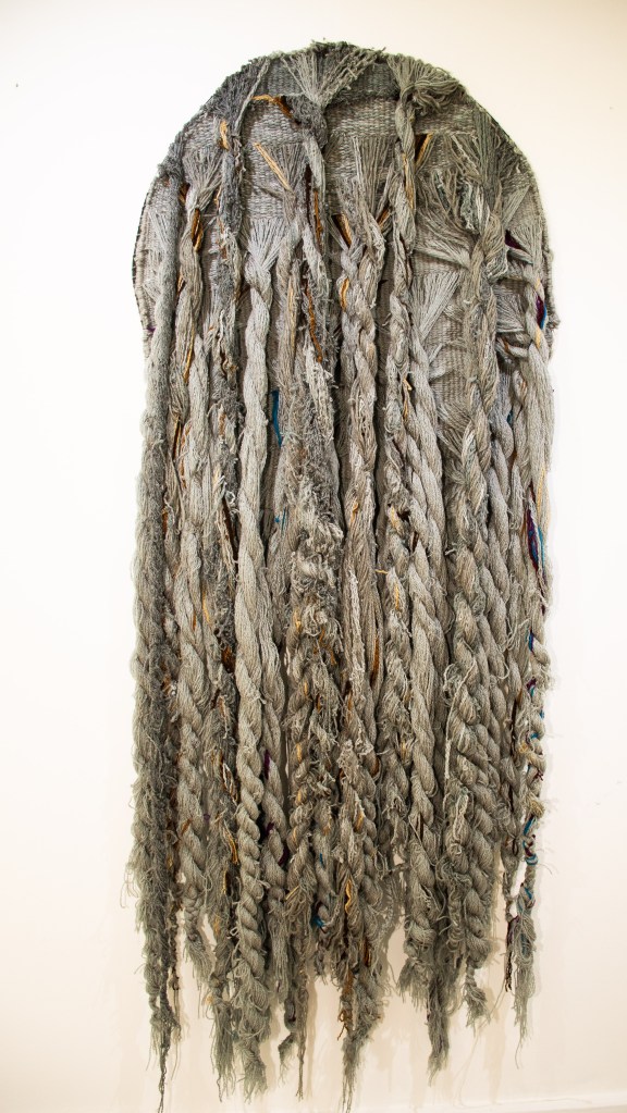 As the feminist movement has taught us, the personal is political, and the human body is a site where many ideological and cultural battles unfold. The work of Textile and Fibre Arts graduate Kadeen Williams addressed the cultural significance of black hair, which is a subject of acute interest in Jamaica. Her work, which consisted of 3D weaving constructions that looked like human hair combined with piece of fabric embroidered text, explored the mother-daughter relationship and the life lessons exchanged, represented in patois in the embroidery, during the nurturing but sometimes necessarily painful domestic ritual of combing hair.