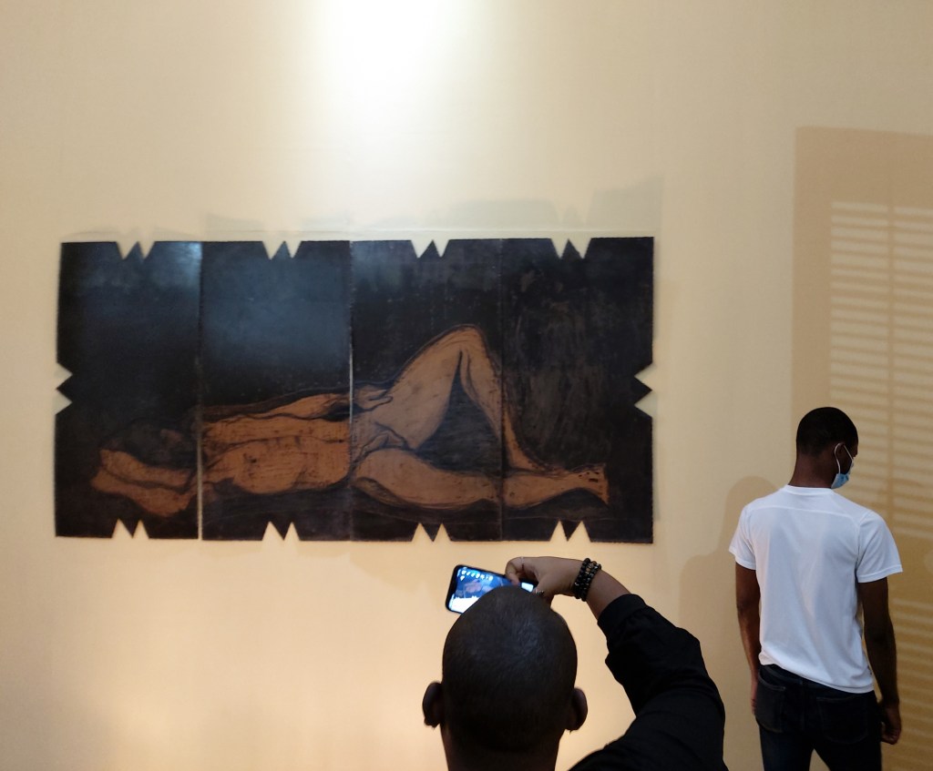 Régine Cuzin was in Haiti as the curator of the Vives exhibition, an exhibition of women’s art from the collections of Le Centre d’Art and the Musée d’Art Haitien. The exhibition was commissioned as part of the Quatre Chemins theatre festival, an annual event in Port-au-Prince, organized by the Haitian playwright, director and actor Guy Régis Junior, and was presented in association with Le Centre d’Art. The theme of this year’s festival, which was held in November 2021, was “Who is Against Equality?”, a pertinent and generative question in the current local and global environment. The accompanying art exhibition, Vives, was for organizational reasons postponed to January, and presented an interesting coda to the questions asked in the last year’s edition of the festival.