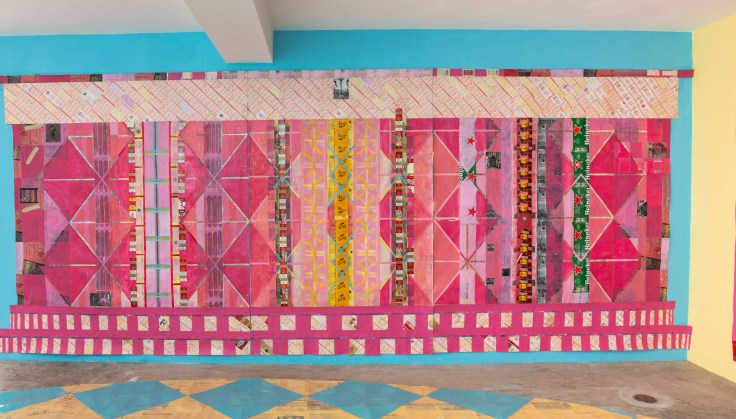 VP: Your collages visually remind us of quilts and patchwork, which has a long (gendered) history in black vernacular culture. Is this relevant to your work? Tell us about the significance of pattern, colour and repetition in your work.
