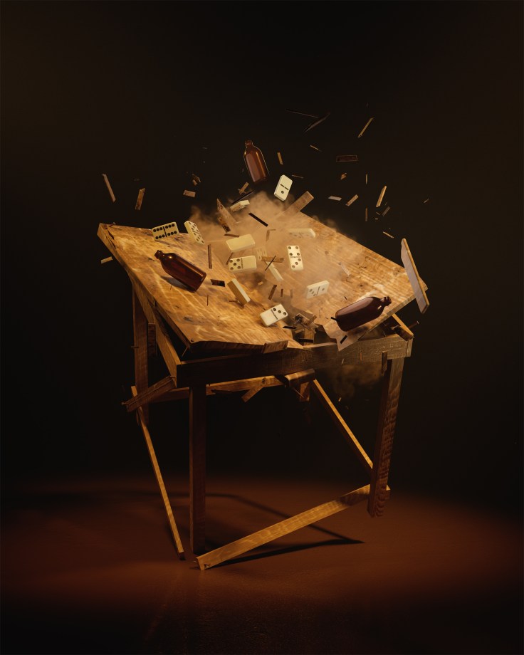Some of the most exciting works in the exhibition come from artists who had not exhibited at the National Gallery or in Jamaica before, such as Acquille Dunkley and Janice Reid. Dunkley’s visually striking digital images use iconic aspects of Jamaica’s material culture, such as the dominoes table or the jerk pan, adding surreal life to these inanimate objects by removing the human presence and presenting them in the fashion of formal portraits. Reid’s photograph, Fancy Dress (The Fanny Eaton Series), which has similar surreal resonances,reflects on the story of Fanny Eaton, the favoured model and muse of the Pre-Raphaelites, but flips the representational script to focus on Eaton’s Jamaican heritage, using a large jackfruit as a visually disruptive but defining element.